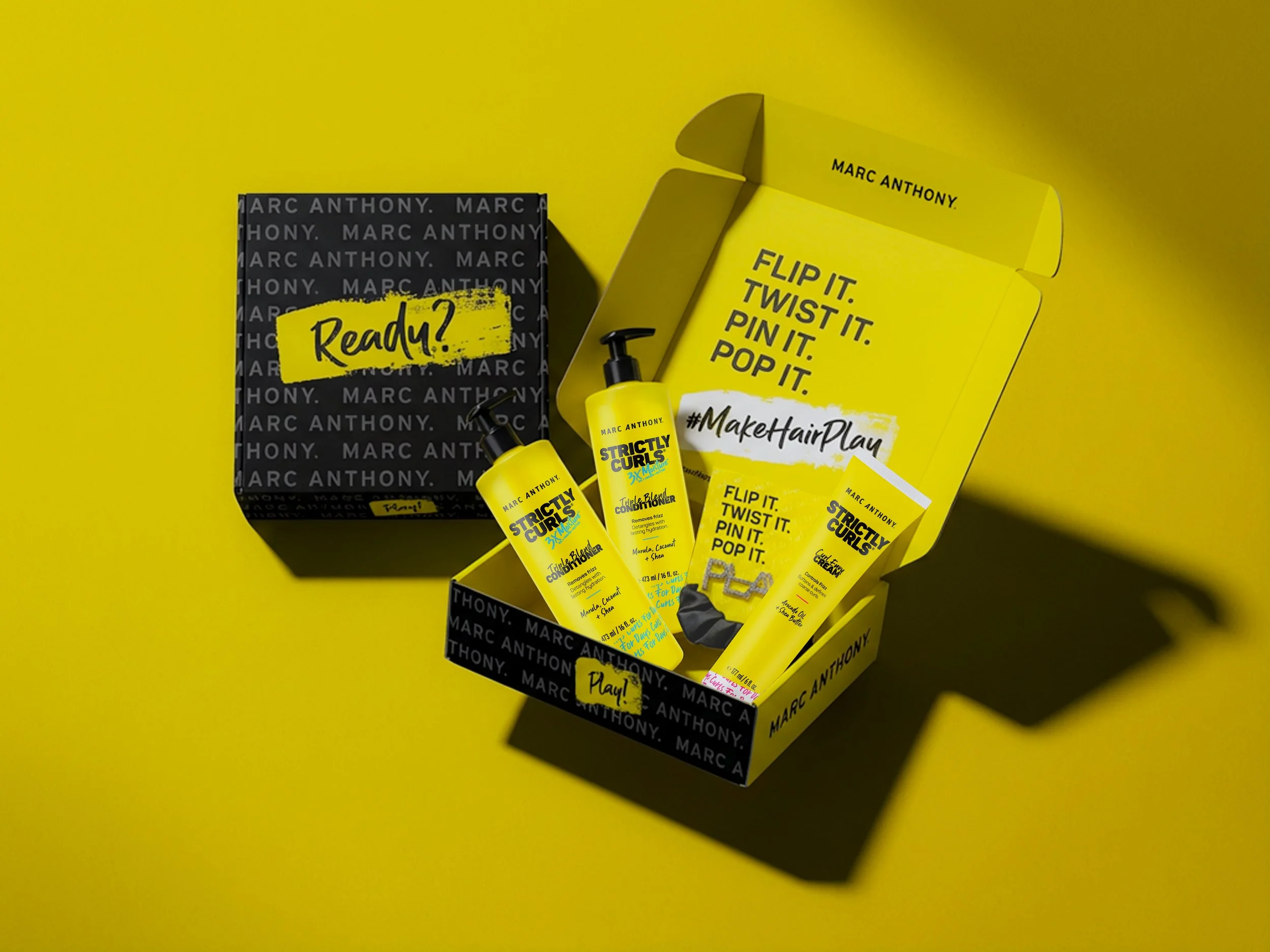 For Marc Anthony Haircare’s 25th anniversary rebrand, we created the #MakeHairPlay social campaign to celebrate creativity and self-expression through hair. The concept was inspired by childhood memories of styling our own hair, our friends’ hair, and our dolls’ hair before we were taught to “fix” or “tame” it. The campaign invited audiences to rediscover the joy of hair play. Central to the launch was an influencer mailer box featuring hero SKUs from the Strictly Curl and Grow Long lines along with playful hair accessories. The interactive unboxing encouraged experimentation, shared moments, and social engagement while showcasing the brand’s refreshed identity.
